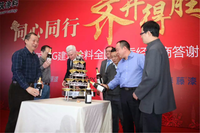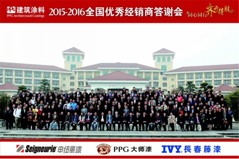2016年2月底,PPG建筑涂料中國(guó)區(qū)上海總部舉行了盛大的2015-2016全國(guó)優(yōu)秀經(jīng)銷商答謝會(huì),來(lái)自全國(guó)的200多位優(yōu)秀經(jīng)銷商代表齊聚一堂,其中力誠(chéng)建材賴總也到場(chǎng)出席,共同見(jiàn)證了此次盛會(huì)。