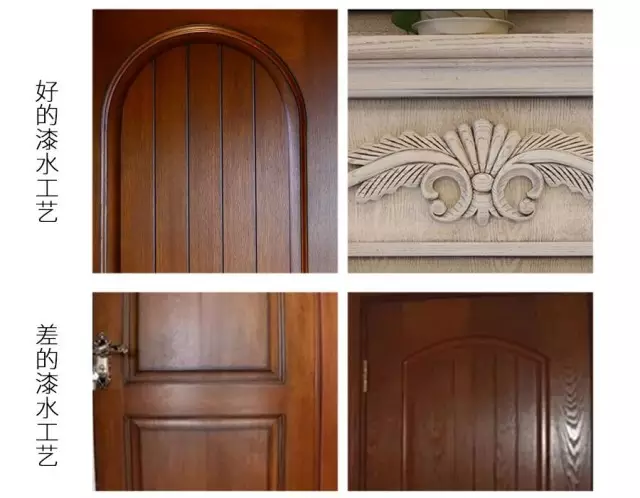 漆水完全不一樣,我們是嚴(yán)格按照美式涂裝的做法:木磨--灰磨--刷封固底漆--噴底色--噴底漆--油磨--搽格里斯--打毛刷--噴底漆--油磨--網(wǎng)紗--面修色漆--面漆,而市場(chǎng)上的貼板門,大多數(shù)的漆水只做了二底一面,甚至還有做一底一面的,少做一次,材料少一次,工錢少一次。漆工材料及工錢高:60-120元。